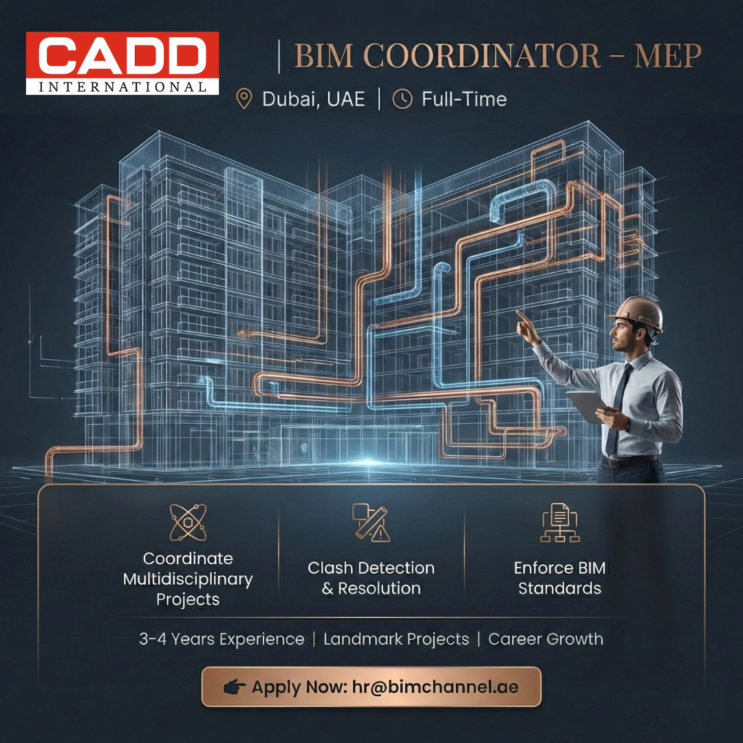 #BIMJobs #DubaiConstruction #MEPCoordinator #BIMManager #RevitMEP #Navisworks #AECIndustry #DubaiJobs #CADDInternational #HiringNow