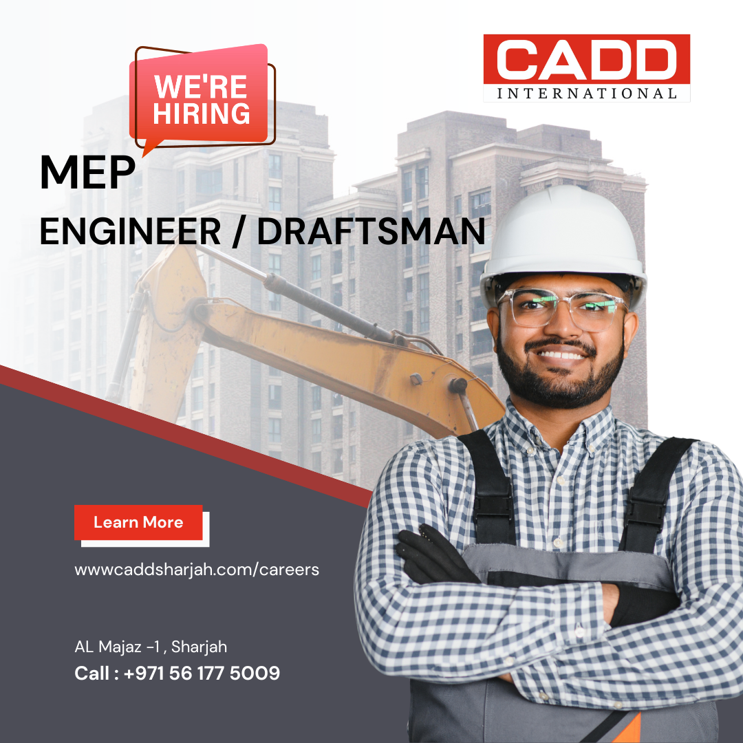 #SharjahJobs #UAEJobs #MEPJobs #RevitMEP #AutoCAD #EngineeringJobsUAE #MechanicalEngineer #ElectricalEngineer #MEPDraftsman #HiringSharjah #ConstructionJobsUAE #BIMJobs #CADDSharjah #JobOpening #GulfJobs