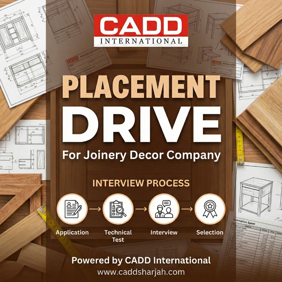 #JoineryDraftsman #DraftsmanJobsUAE #InteriorFitout #JoineryWorks #AutoCADDraftsman #FurnitureDesign #JoineryDesign #CADDInternational #SharjahJobs #UAEJobs #ImmediateHiring #PlacementDrive #CADDPlacements #DesignAndBuild #TechnicalDrafting #JoineryEngineer #ArchitectureJobsUAE #InteriorDesignUAE #AutoCADJobs #SharjahCareers